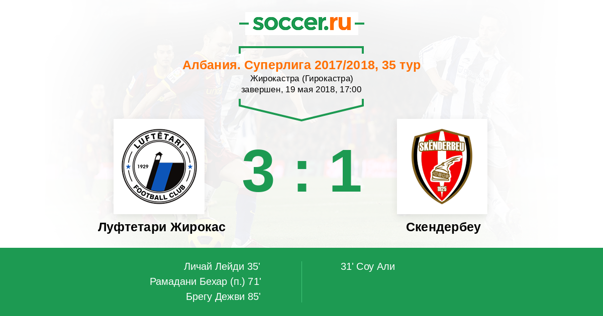 Протокол матча Луфтетари Жирокас против Скендербеу