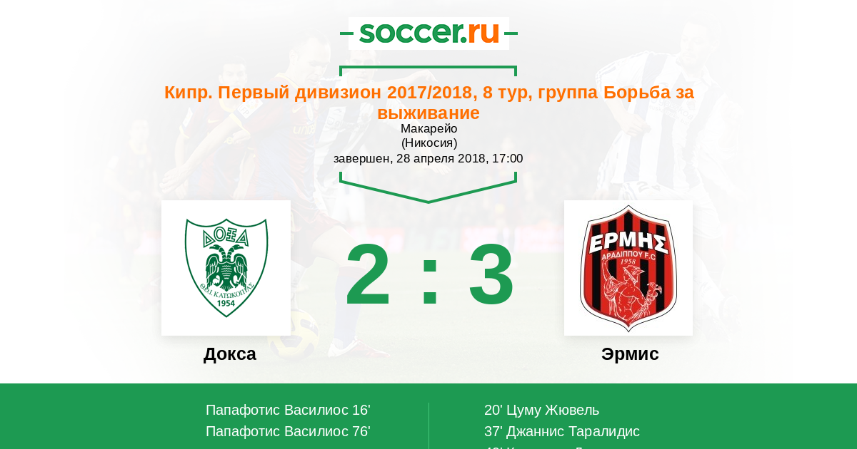 Протокол матча Докса против Эрмис