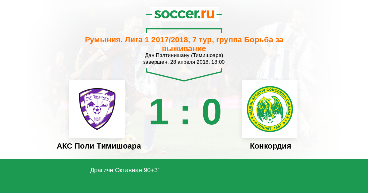 Протокол матча АКС Поли Тимишоара против Конкордия