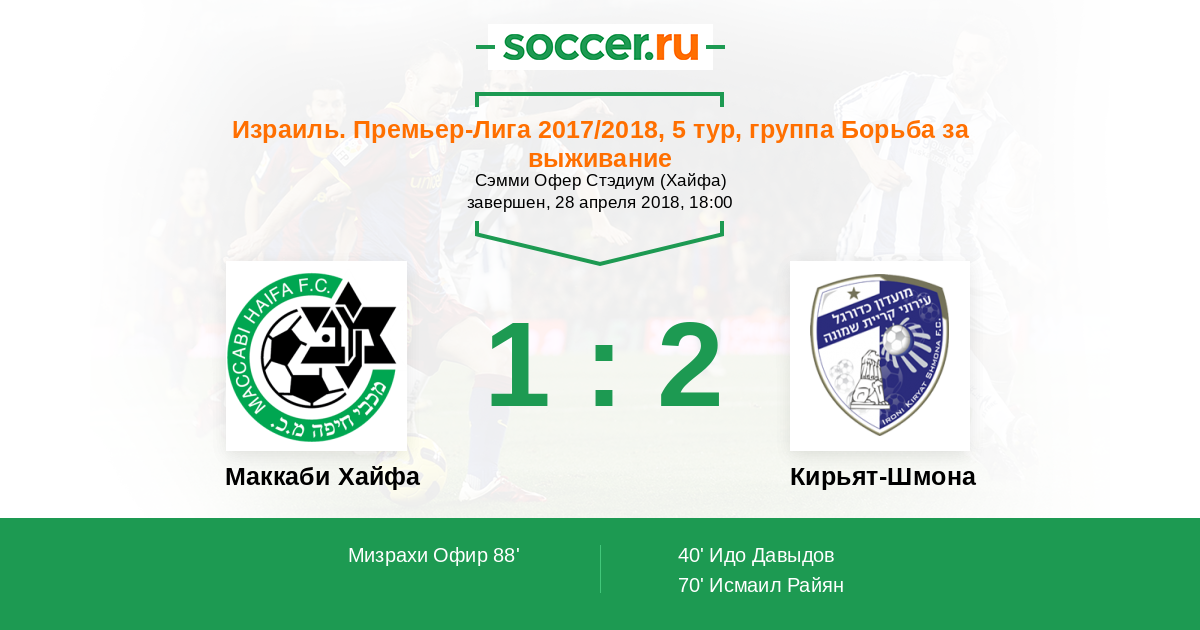Протокол матча Маккаби Хайфа против Кирьят-Шмона