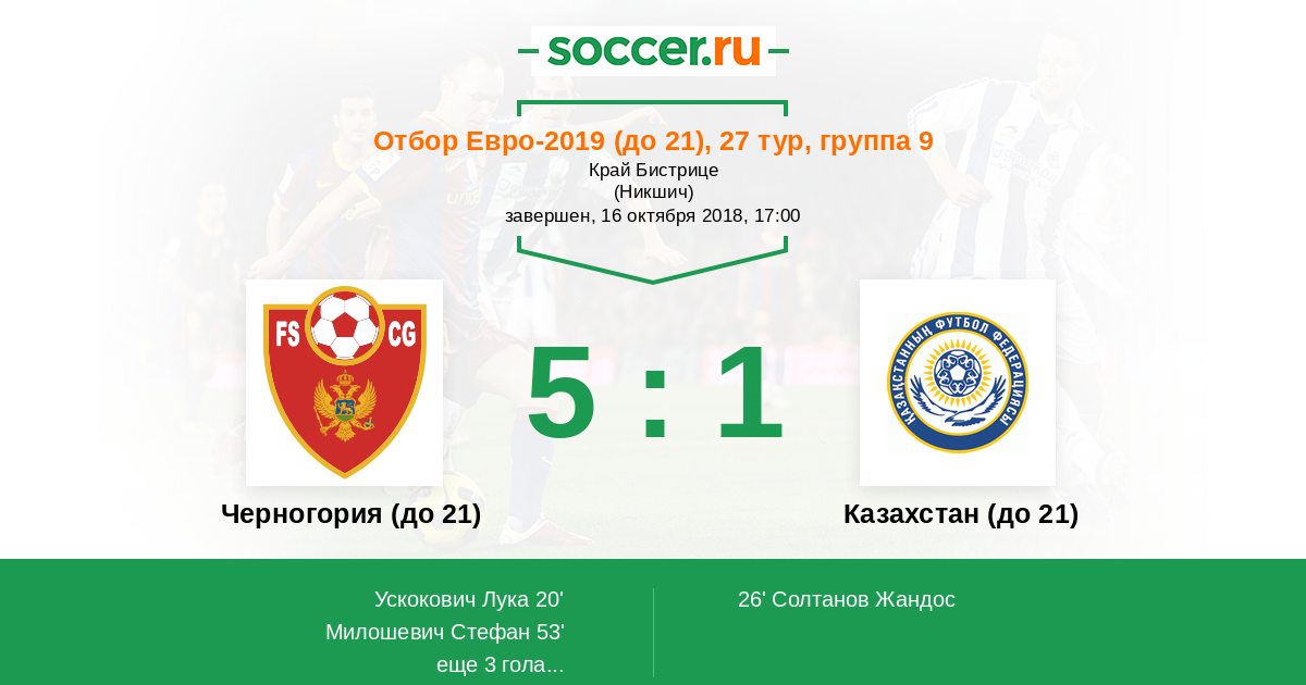 Протокол матча Черногория (до 21) против Казахстан (до 21)