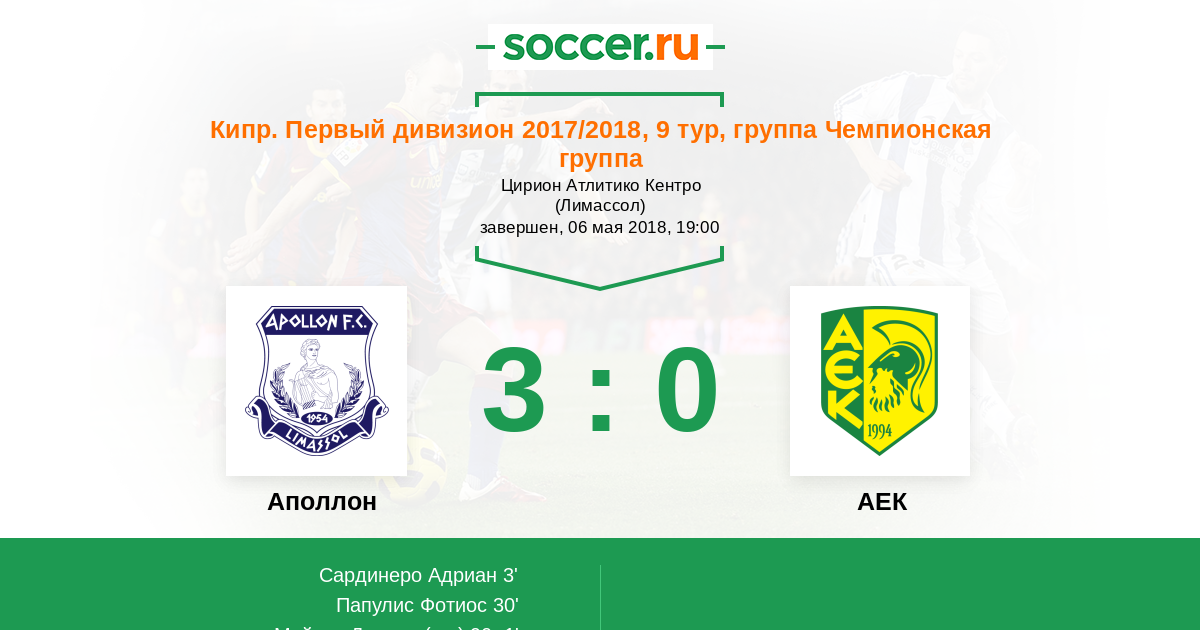 Протокол матча Аполлон против АЕК