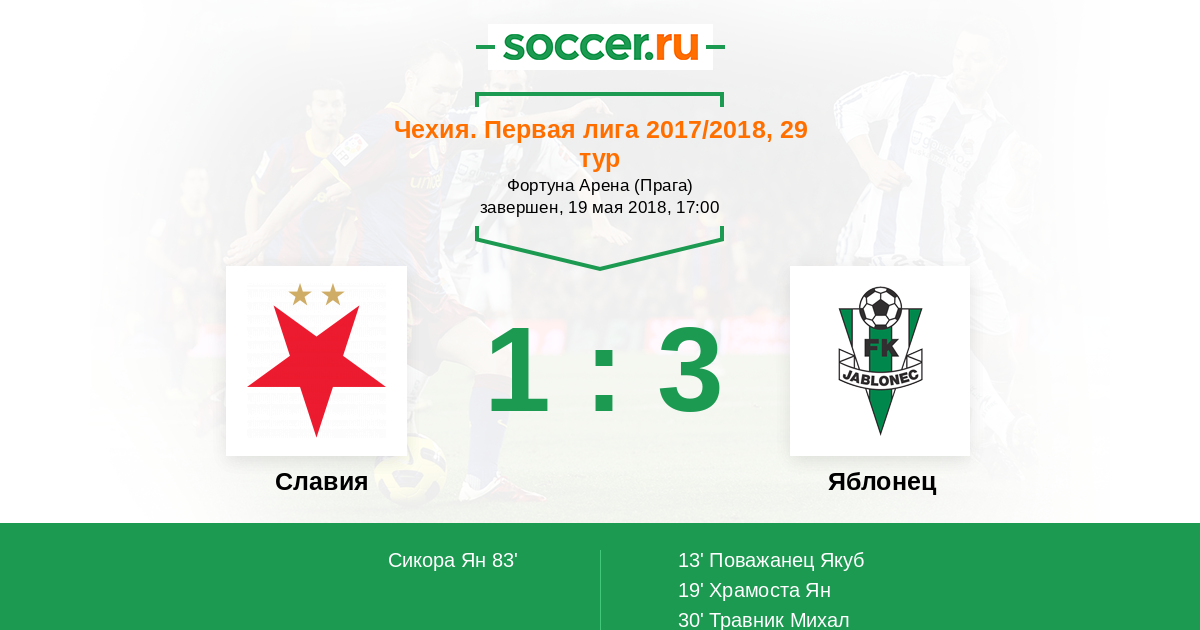 Протокол матча Славия против Яблонец