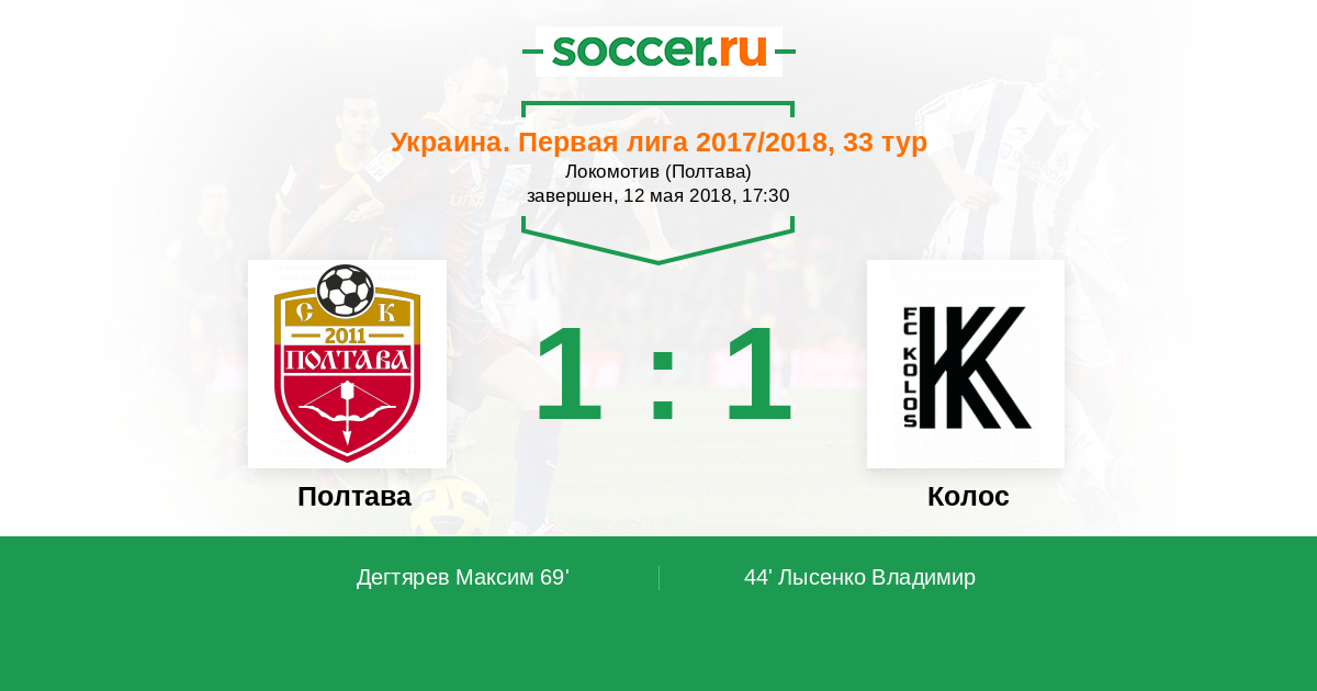 Протокол матча Полтава против Колос
