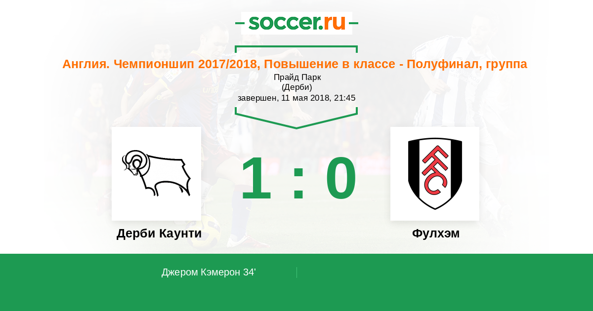 Протокол матча Дерби Каунти против Фулхэм