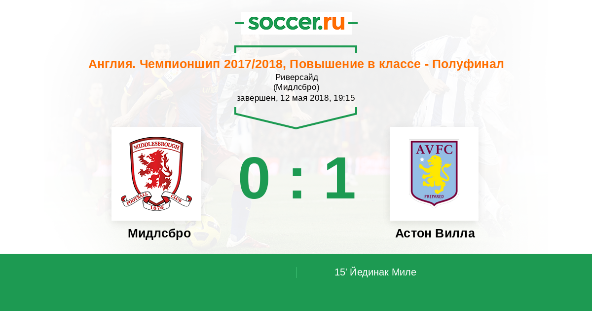 15' (0:1) Йединак Миле (15) (Грилиш Джек (10))