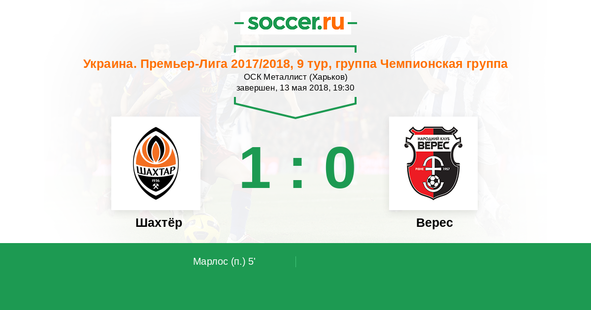 Протокол матча Шахтёр против Верес