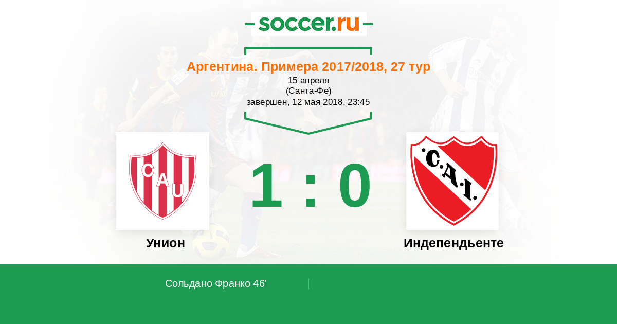 Протокол матча Унион против Индепендьенте