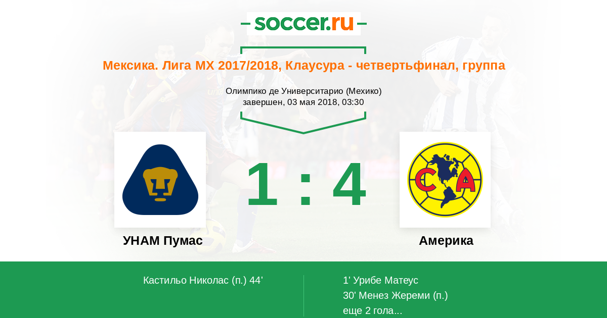 Протокол матча УНАМ Пумас против Америка
