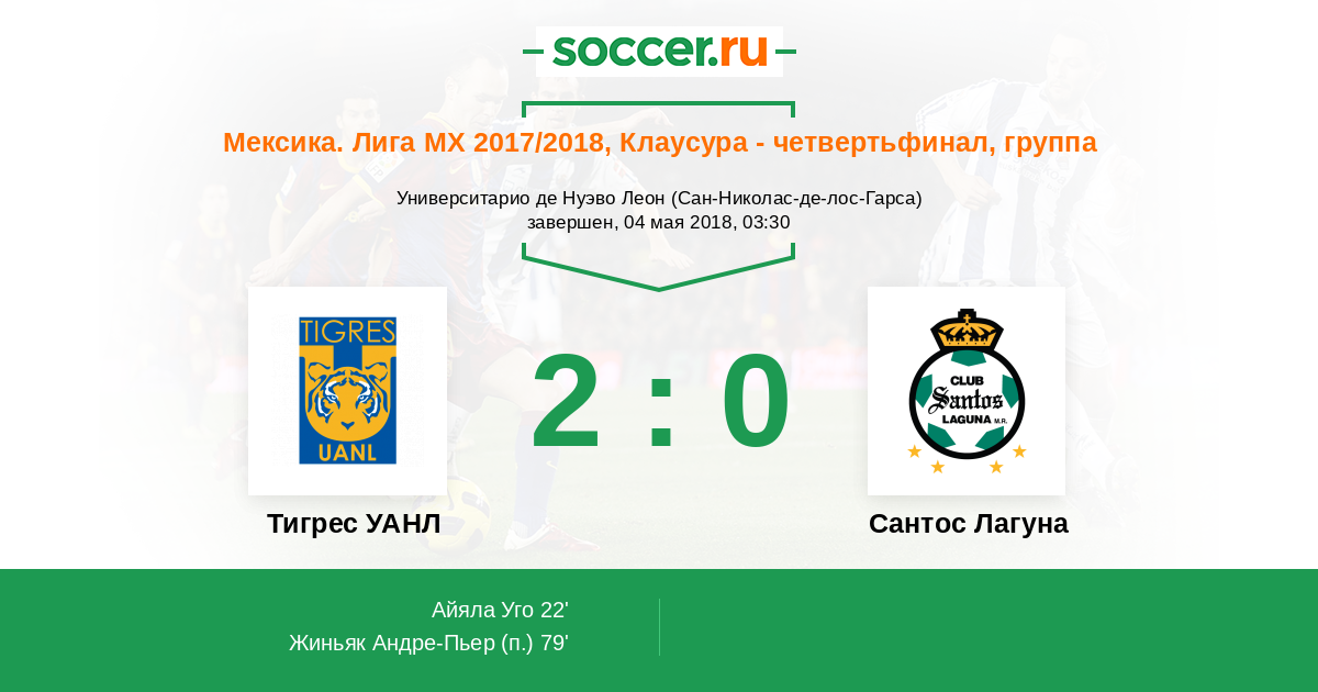 Протокол матча Тигрес УАНЛ против Сантос Лагуна
