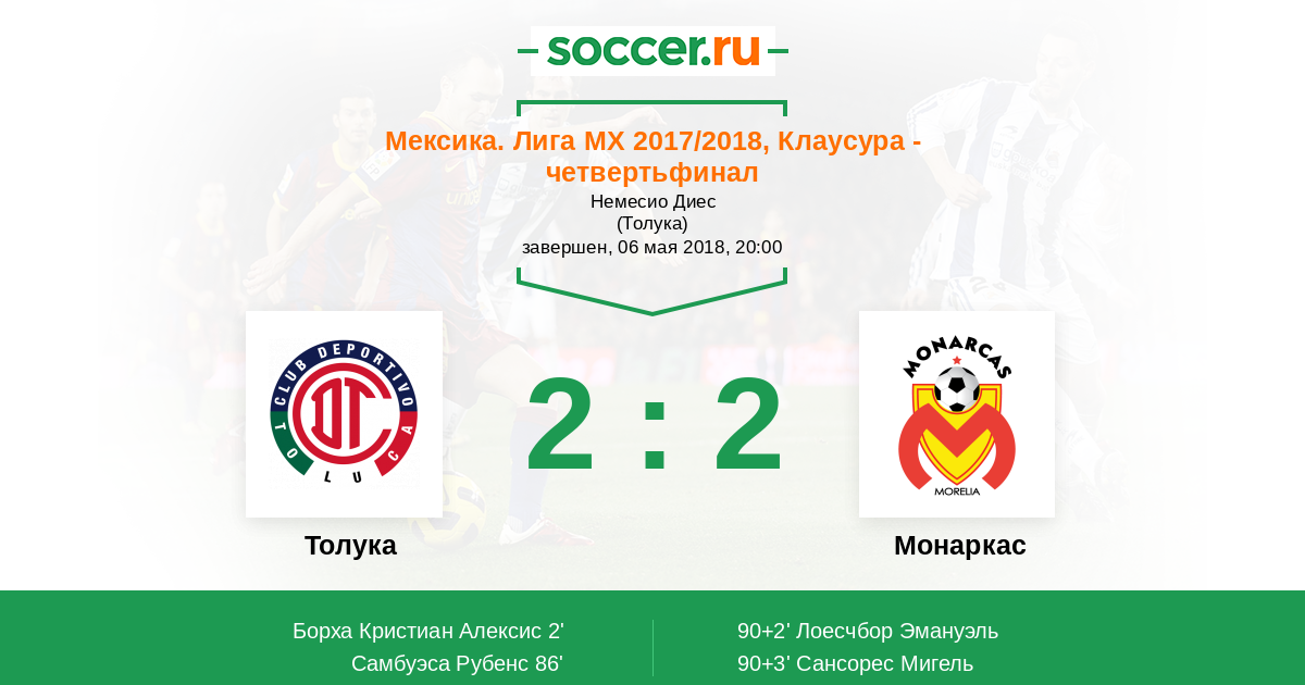 Протокол матча Толука против Монаркас