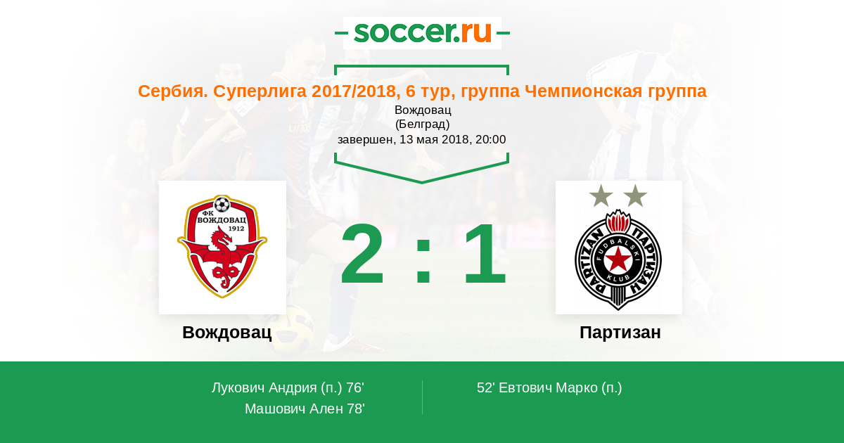 Протокол матча Вождовац против Партизан