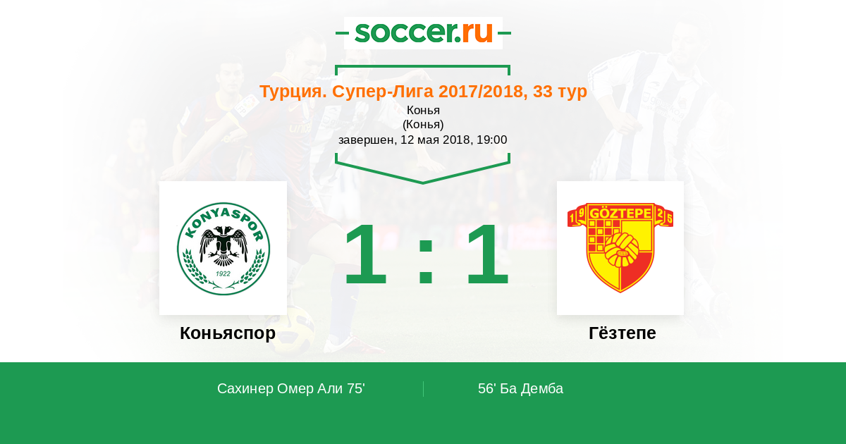 Протокол матча Коньяспор против Гёзтепе