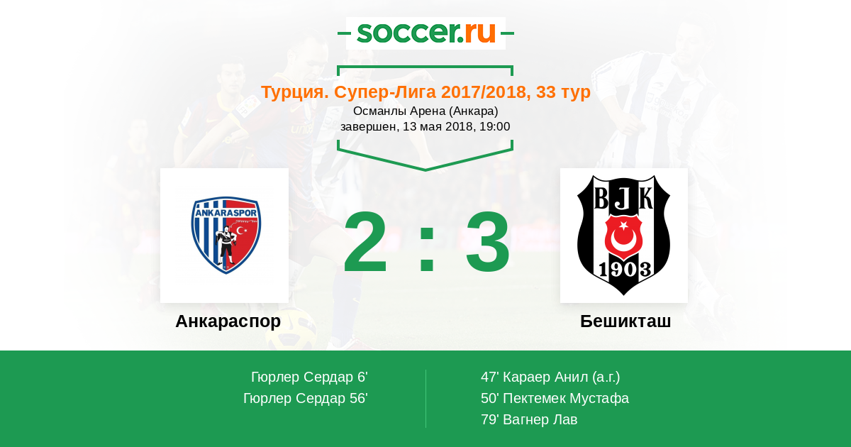 47' (1:1) Автогол Караер Анил (79)