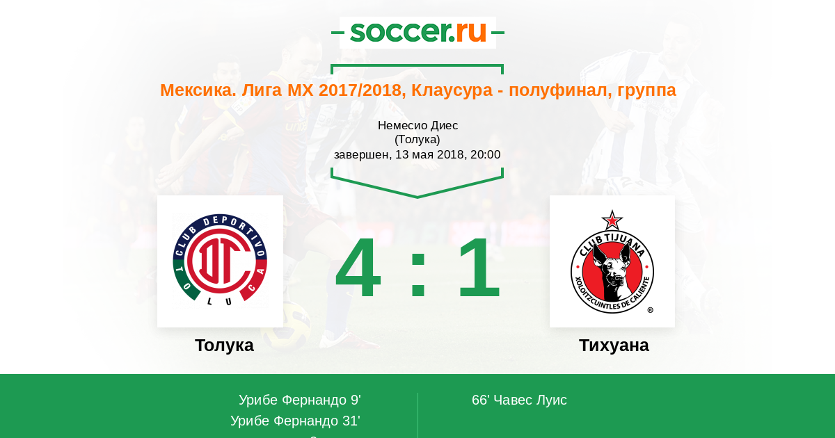 Гол9' (1:0) Урибе Фернандо (20) (Антонио Риос (15))