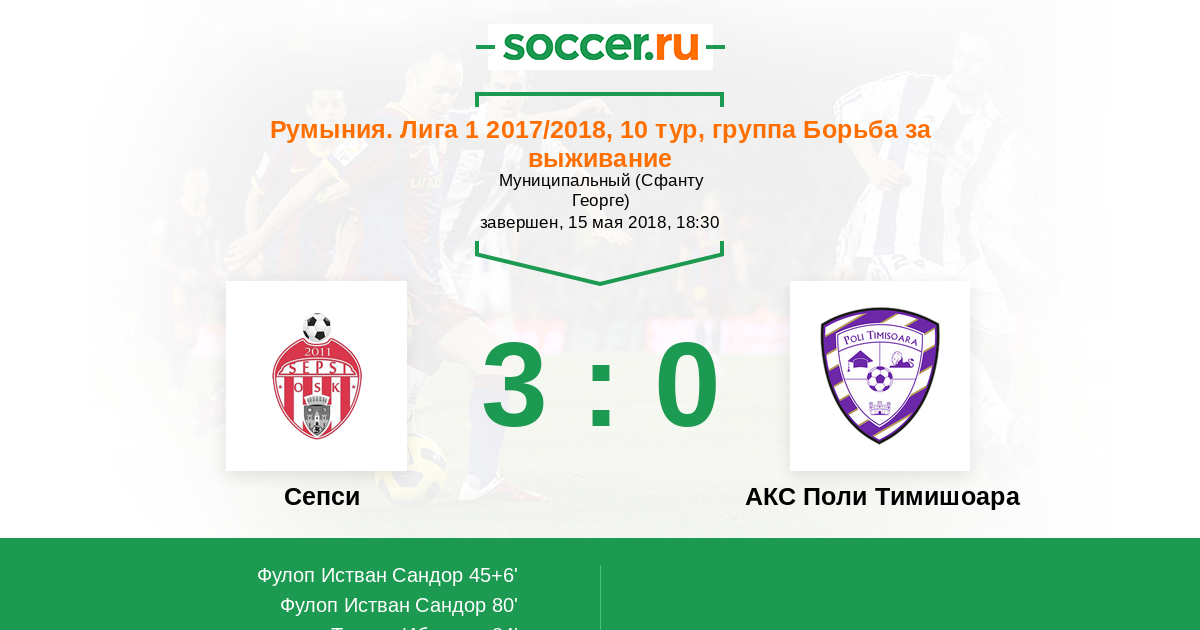 Протокол матча Сепси против АКС Поли Тимишоара