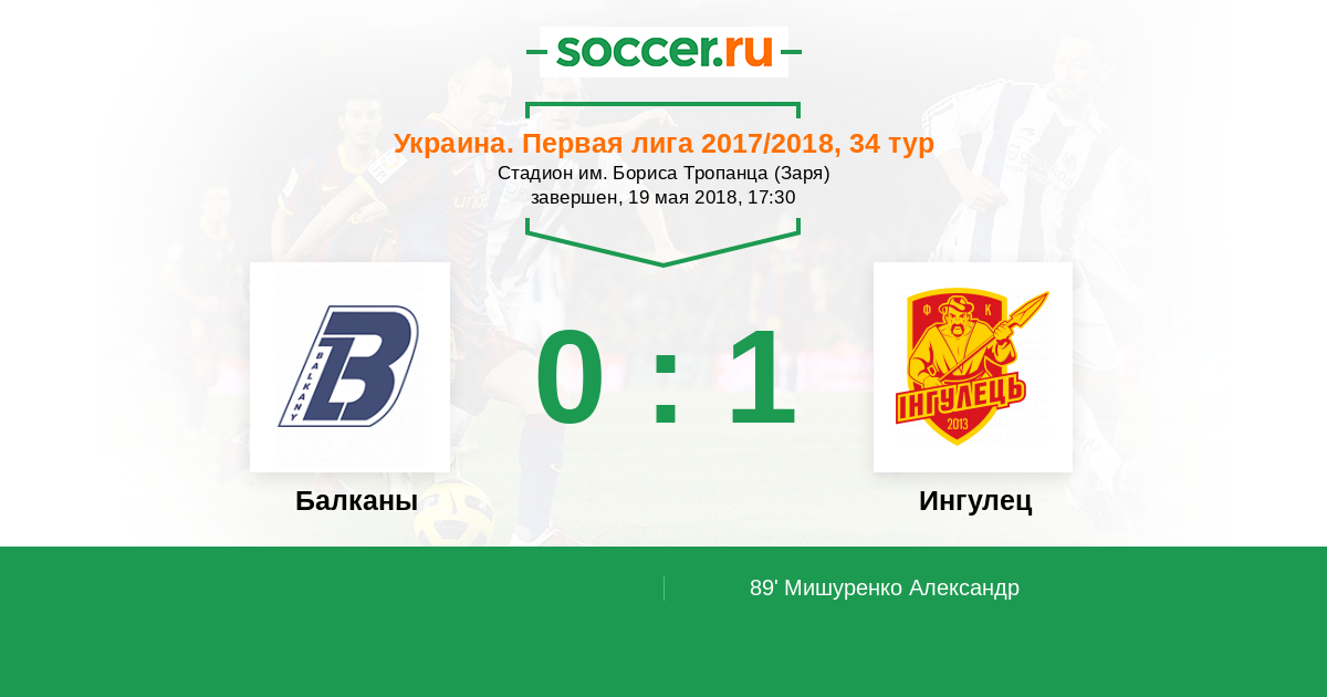 Протокол матча Балканы против Ингулец