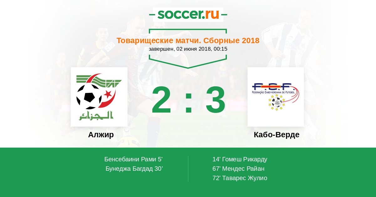 Протокол матча Алжир против Кабо-Верде