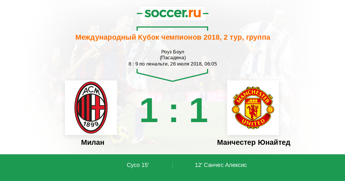 Протокол матча Милан против Манчестер Юнайтед