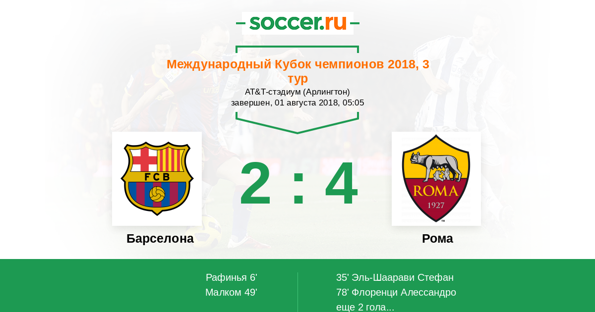 Протокол матча Барселона против Рома