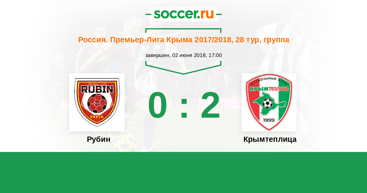 Россия. Премьер-Лига Крыма 14.05.2017 Рубин Логотип футбольный клуб Рубин (Ялта) 0:0 Логотип футбольный клуб Крымтеплица (Молодежное) Крымтеплица