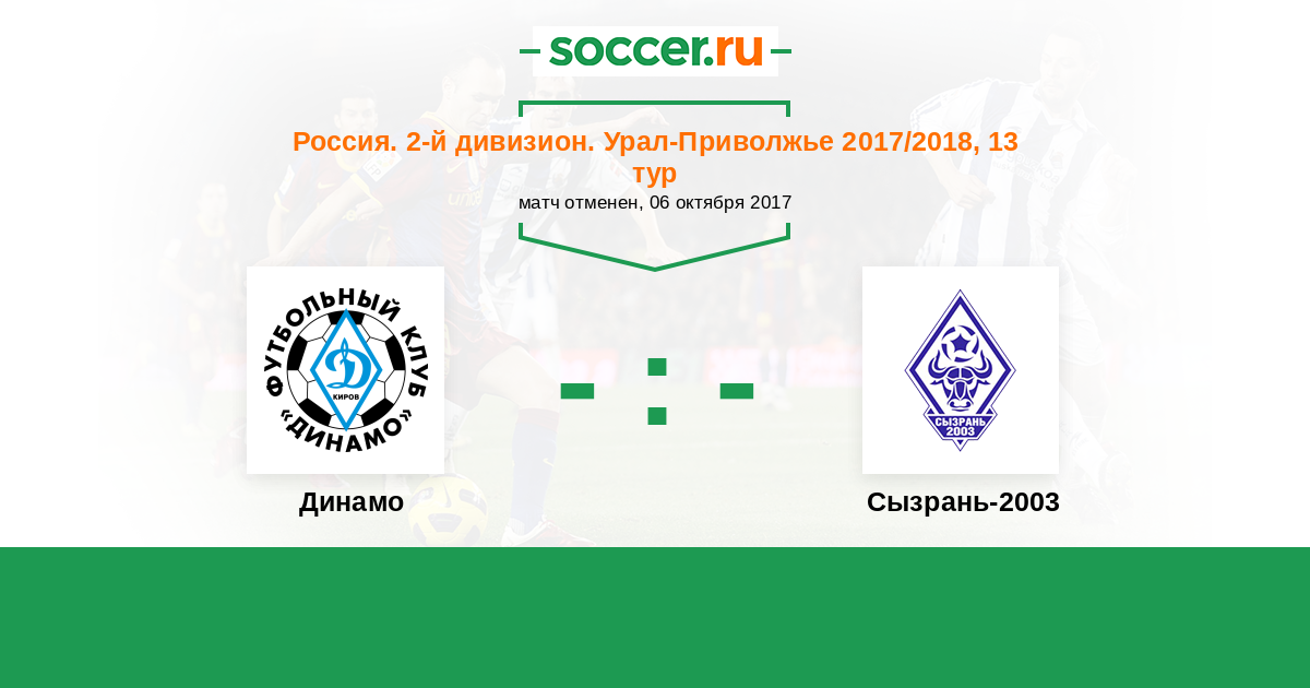 Россия. Вторая лига. Группа 4 04.10.2013 Динамо Киров Логотип футбольный клуб Динамо Киров 0:0 Логотип футбольный клуб Сызрань-2003 Сызрань-2003