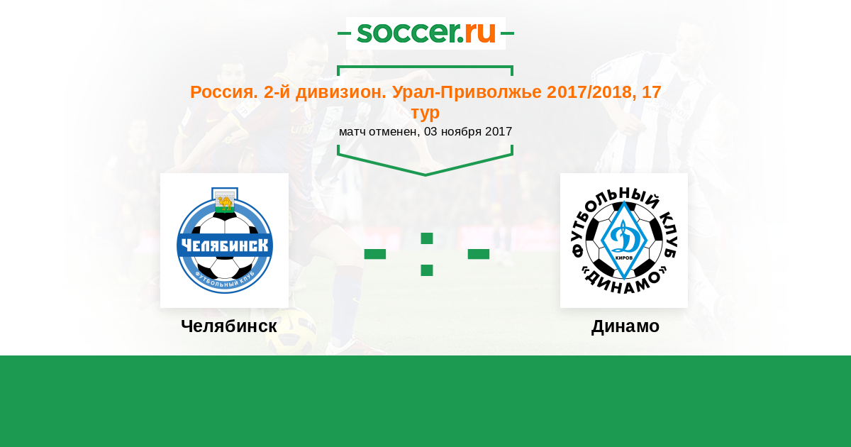 Россия. Вторая лига. Группа 4 07.05.2017 Челябинск Логотип футбольный клуб Челябинск 0:2 Логотип футбольный клуб Динамо Киров Динамо Киров