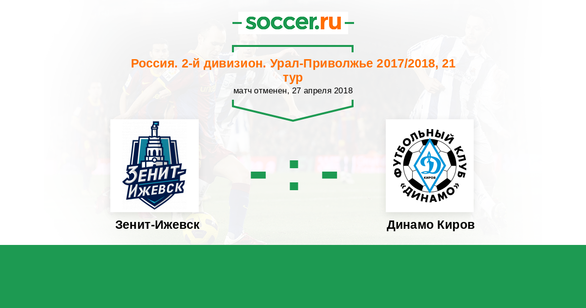 Россия. Вторая лига. Группа 4 30.05.2017 Динамо Киров Логотип футбольный клуб Динамо Киров 0:3 Логотип футбольный клуб Зенит-Ижевск Зенит-Ижевск
