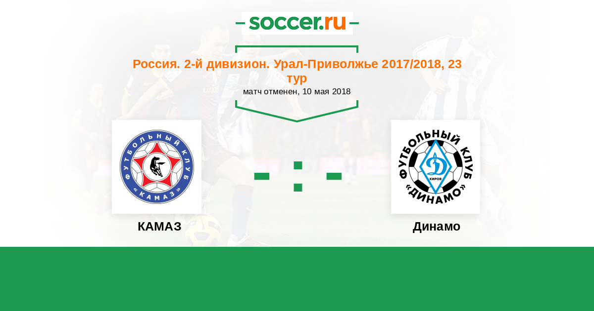 Россия. Вторая лига. Группа 4 04.06.2017 КАМАЗ Логотип футбольный клуб КАМАЗ (Набережные Челны) 2:0 Логотип футбольный клуб Динамо Киров Динамо Киров