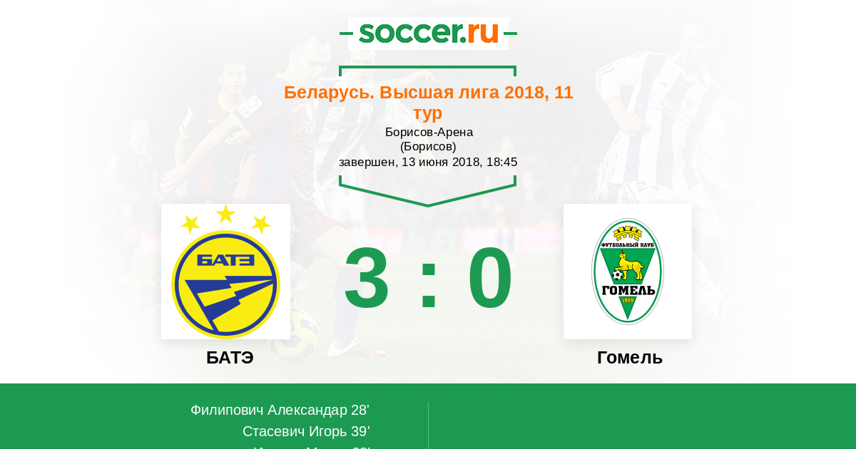 Протокол матча БАТЭ против Гомель