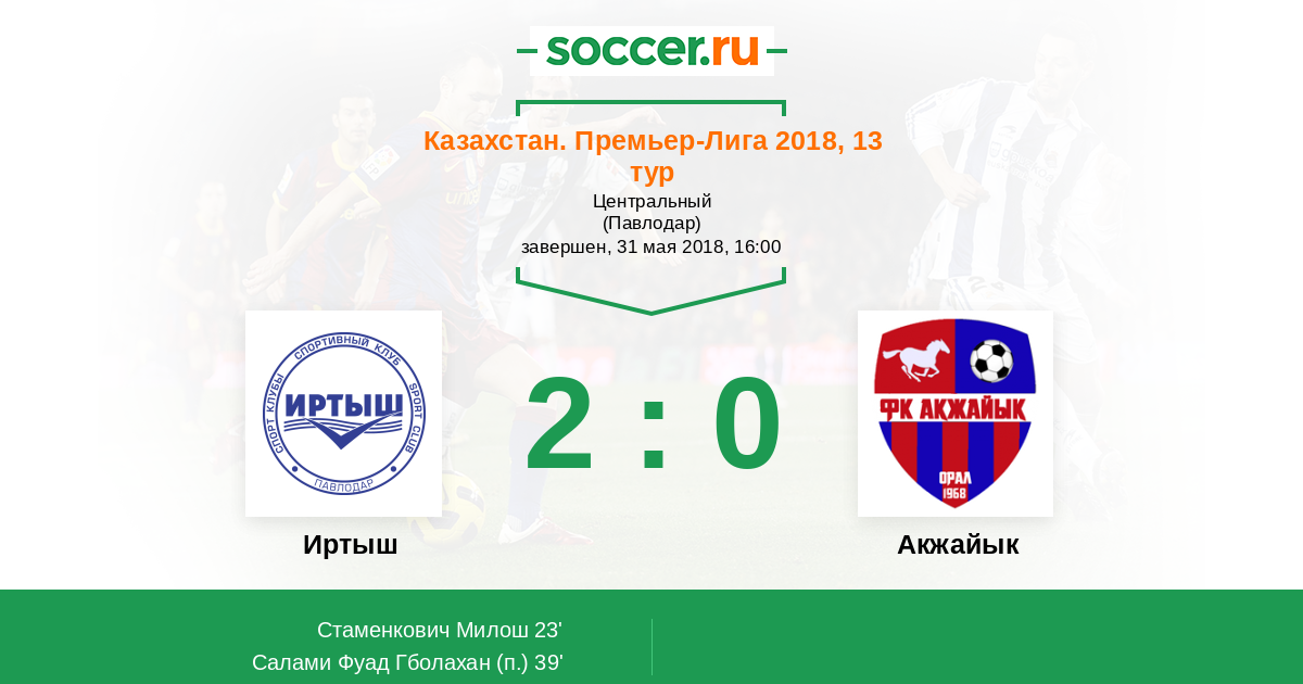 Протокол матча Иртыш против Акжайык