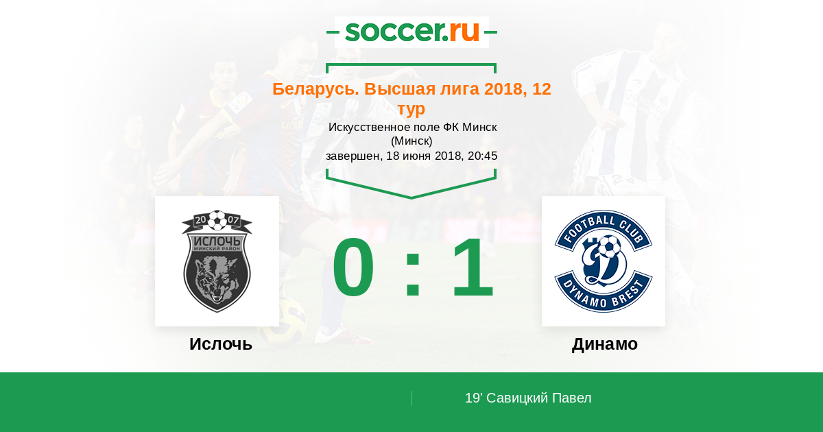 Протокол матча Ислочь против Динамо