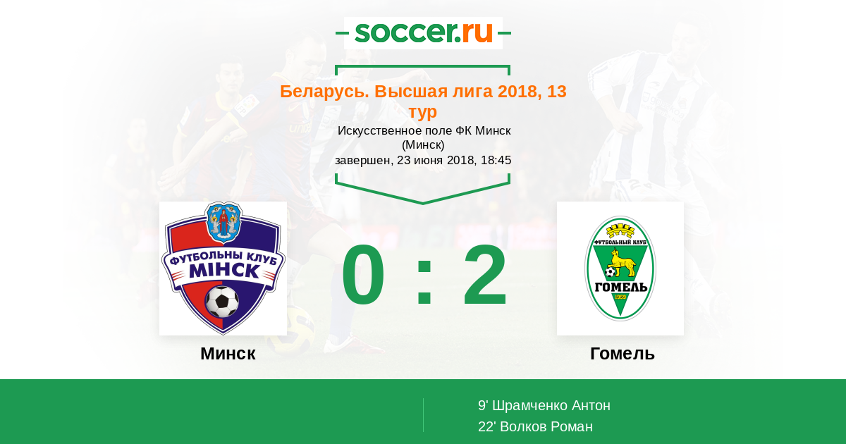 Протокол матча Минск против Гомель