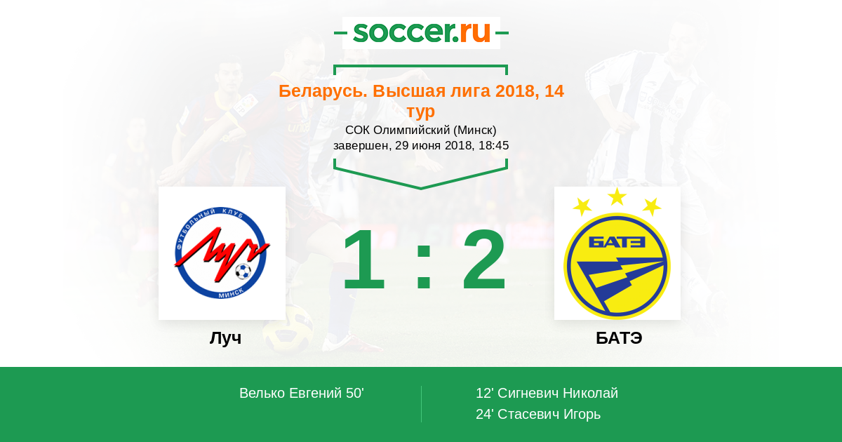 Протокол матча Луч против БАТЭ