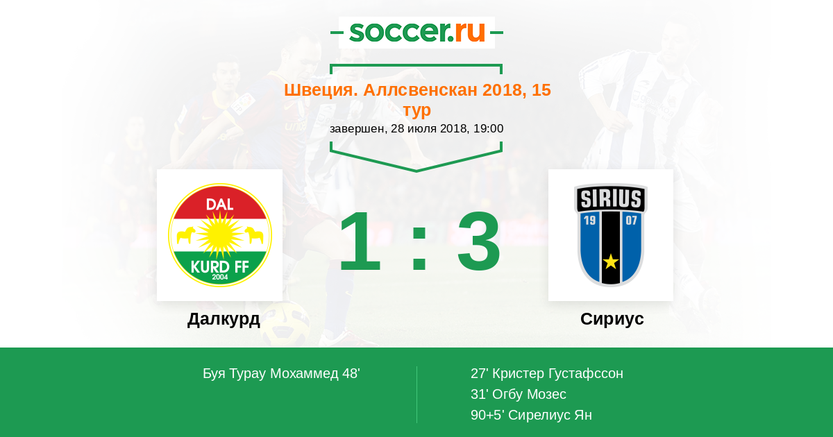 Протокол матча Далкурд против Сириус