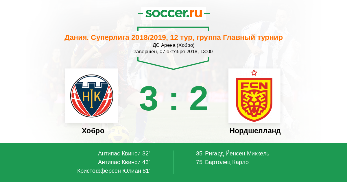 Протокол матча Хобро против Нордшелланд
