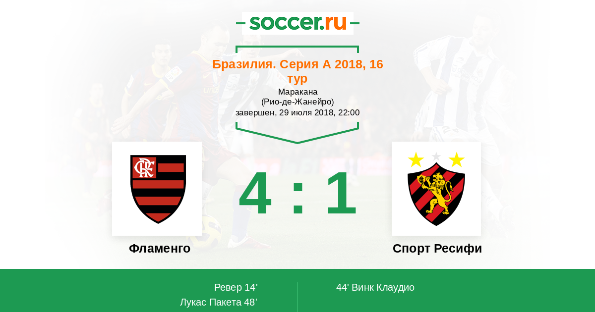 Протокол матча Фламенго против Спорт Ресифи