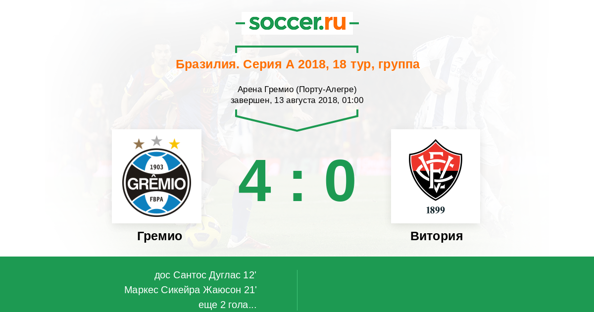 Протокол матча Гремио против Витория
