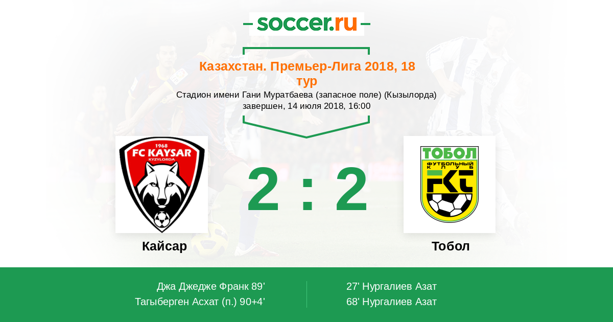 Протокол матча Кайсар против Тобол