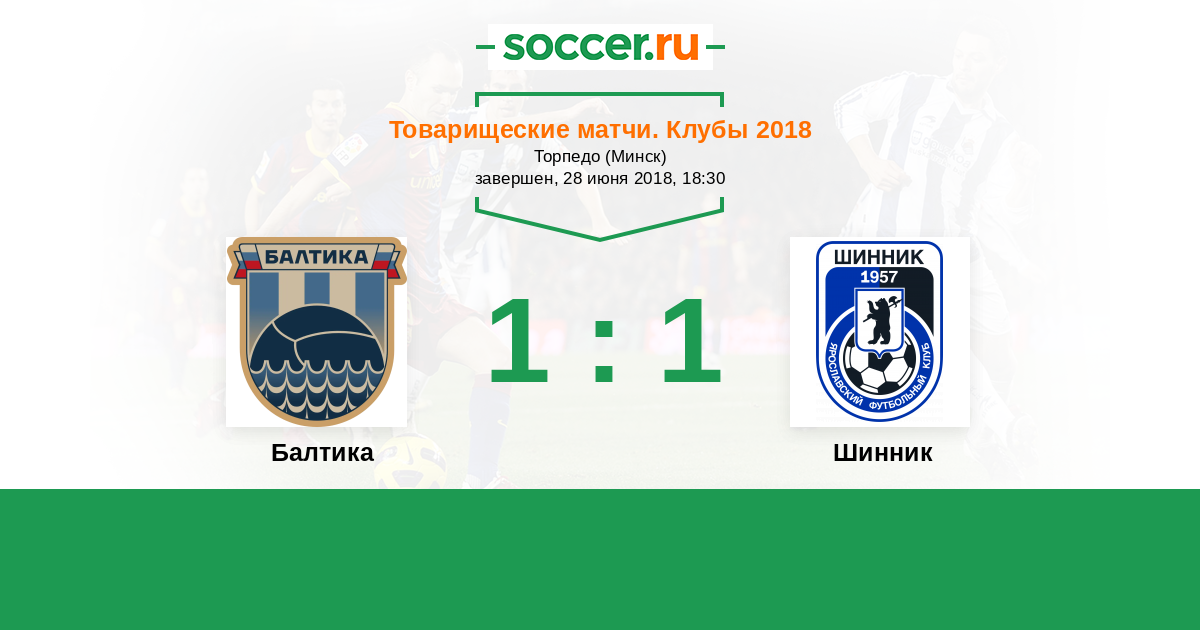 Россия. Первая лига 02.05.2018 Балтика Логотип футбольный клуб Балтика (Калининград) 0:0 Логотип футбольный клуб Шинник (Ярославль) Шинник