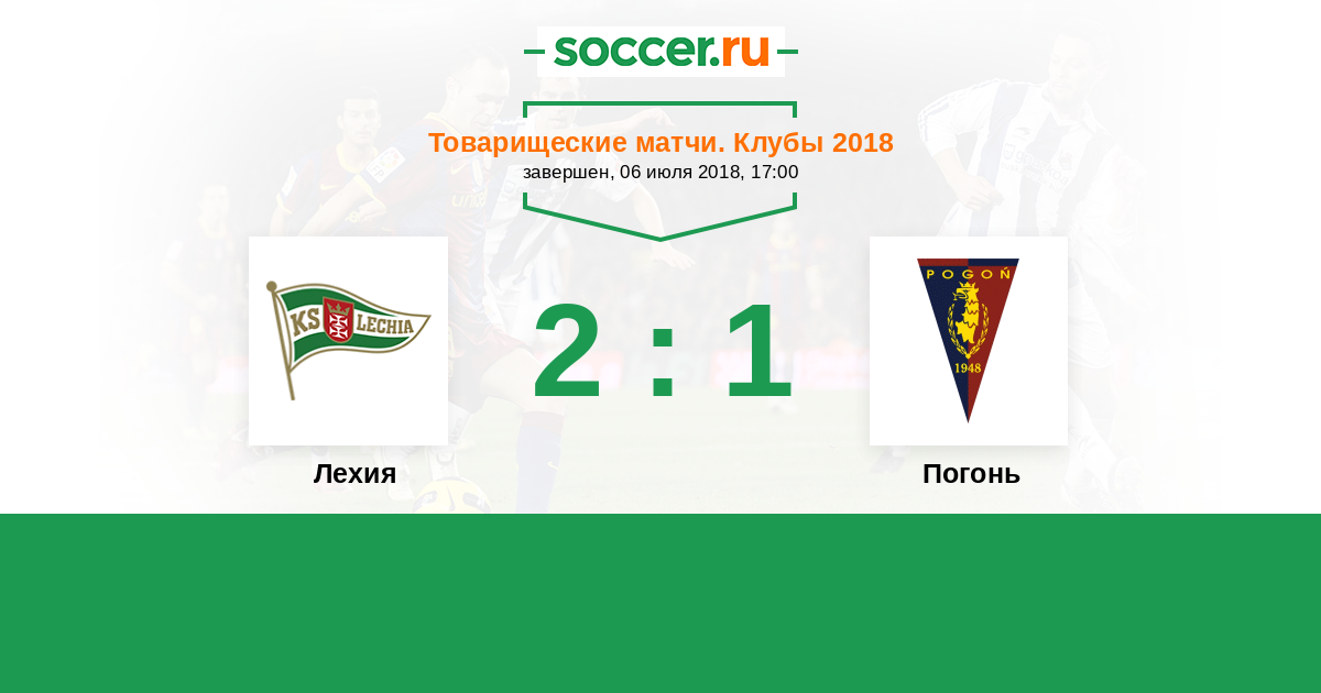 Польша. Экстракласса 25.08.2018 Погонь Логотип футбольный клуб Погонь (Щецин) 2:3 Логотип футбольный клуб Лехия (Гданьск) Лехия