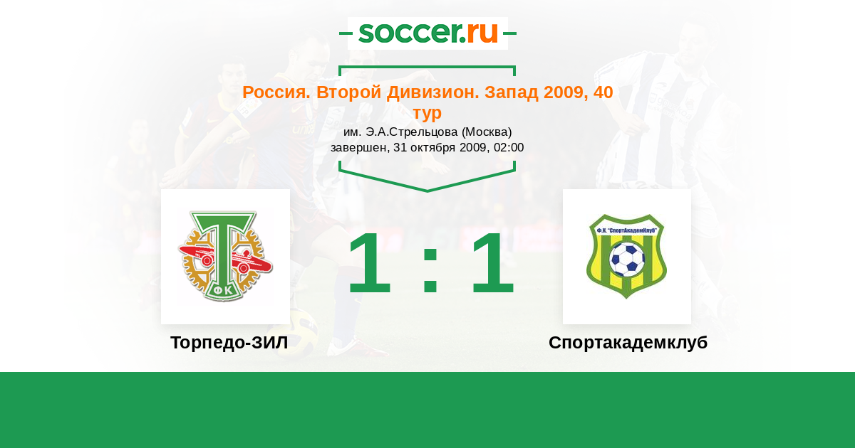 Россия. Вторая лига. Группа 2 18.07.2009 Спортакадемклуб Логотип футбольный клуб Спортакадемклуб (Москва) 0:2 Логотип футбольный клуб Торпедо-ЗИЛ (Москва) Торпедо-ЗИЛ