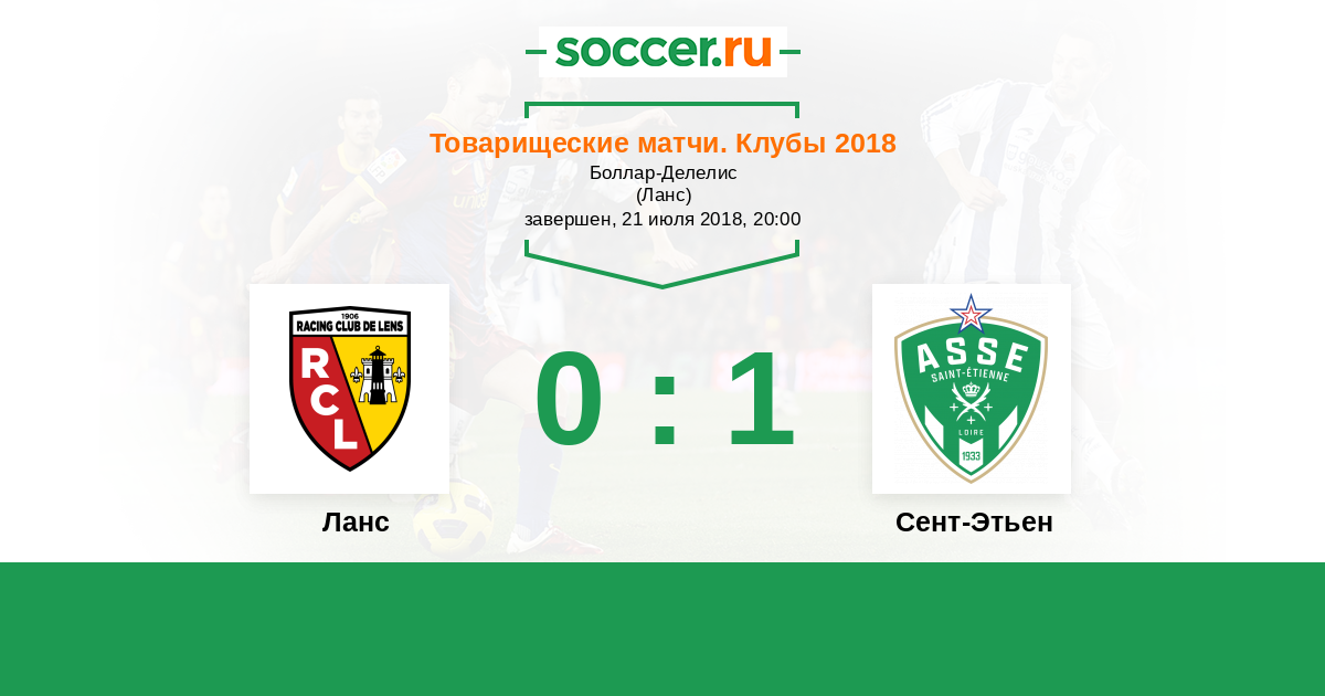 Товарищеские матчи. Клубы 02.08.2014 Ланс Логотип футбольный клуб Ланс 0:1 Логотип футбольный клуб Сент-Этьен Сент-Этьен