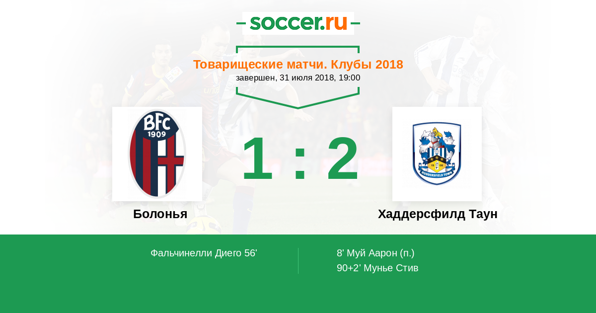 Протокол матча Болонья против Хаддерсфилд Таун