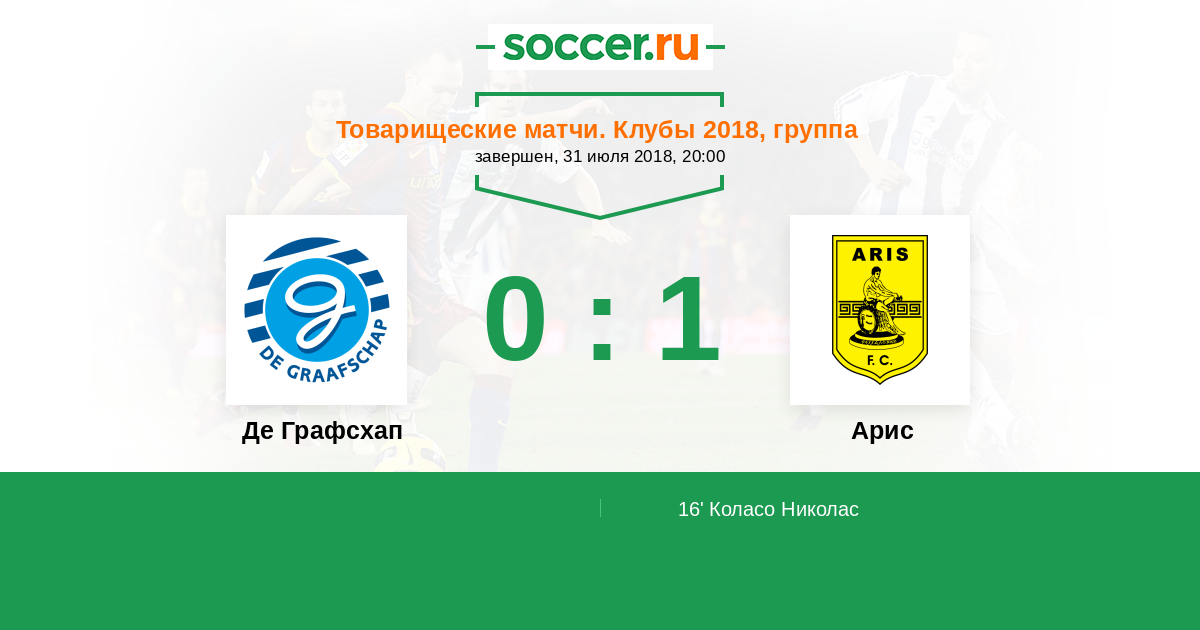 Протокол матча Де Графсхап против Арис