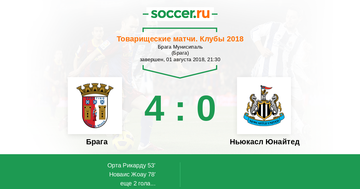 Протокол матча Брага против Ньюкасл Юнайтед