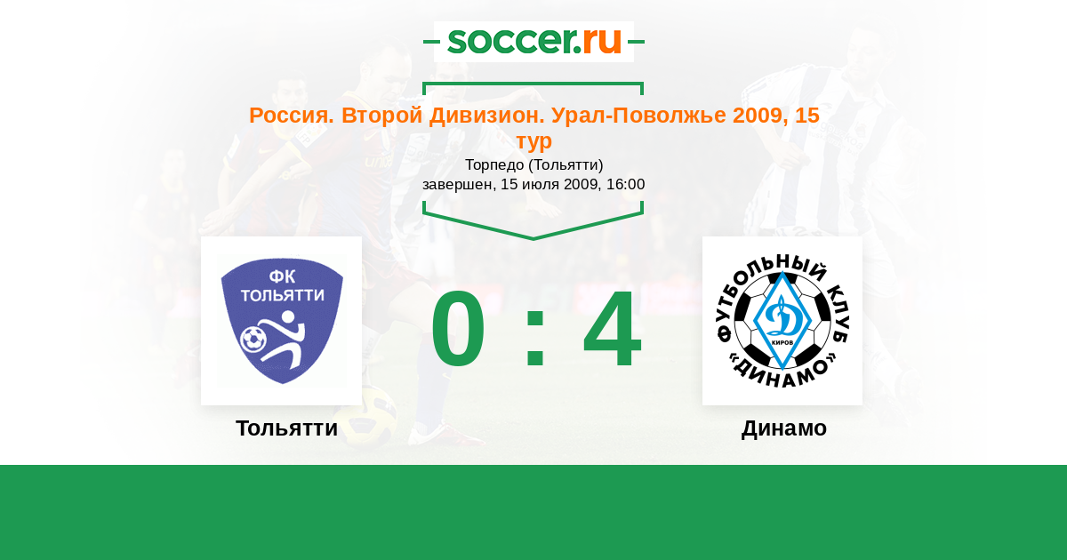 Россия. Вторая лига. Группа 4 22.10.2009 Динамо Киров Логотип футбольный клуб Динамо Киров 1:1 Логотип футбольный клуб Тольятти Тольятти