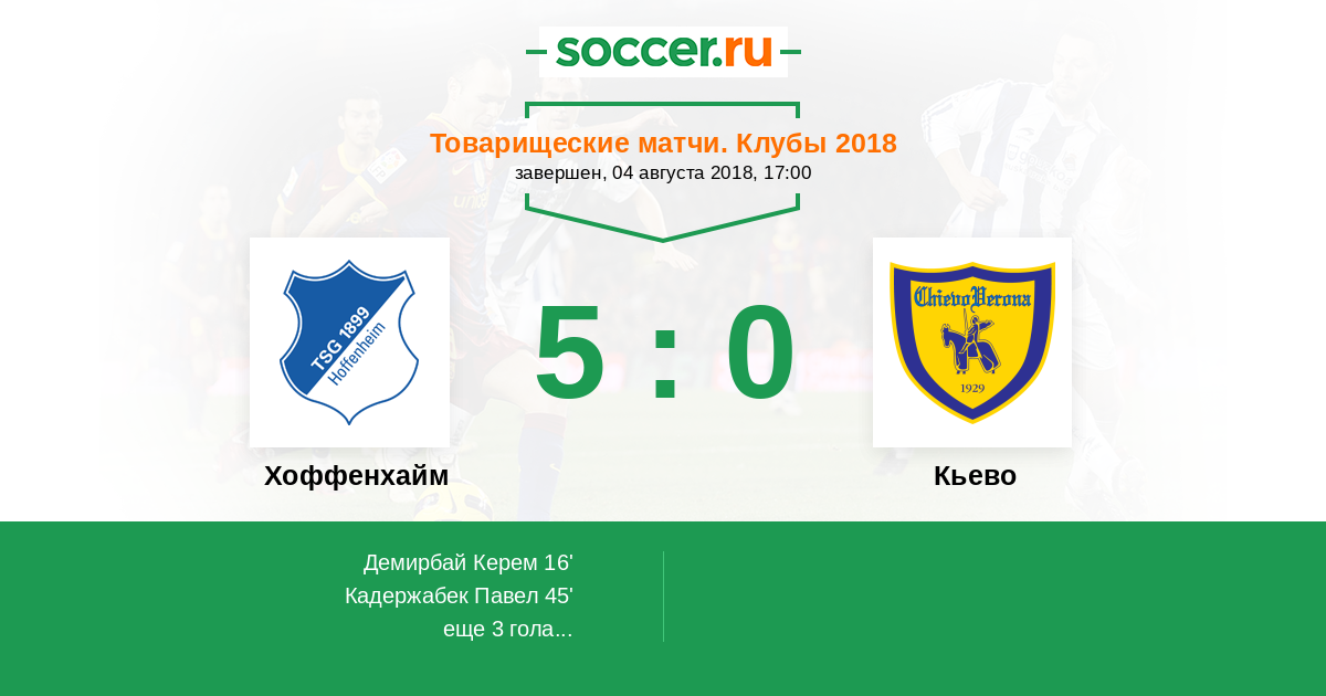 Протокол матча Хоффенхайм против Кьево