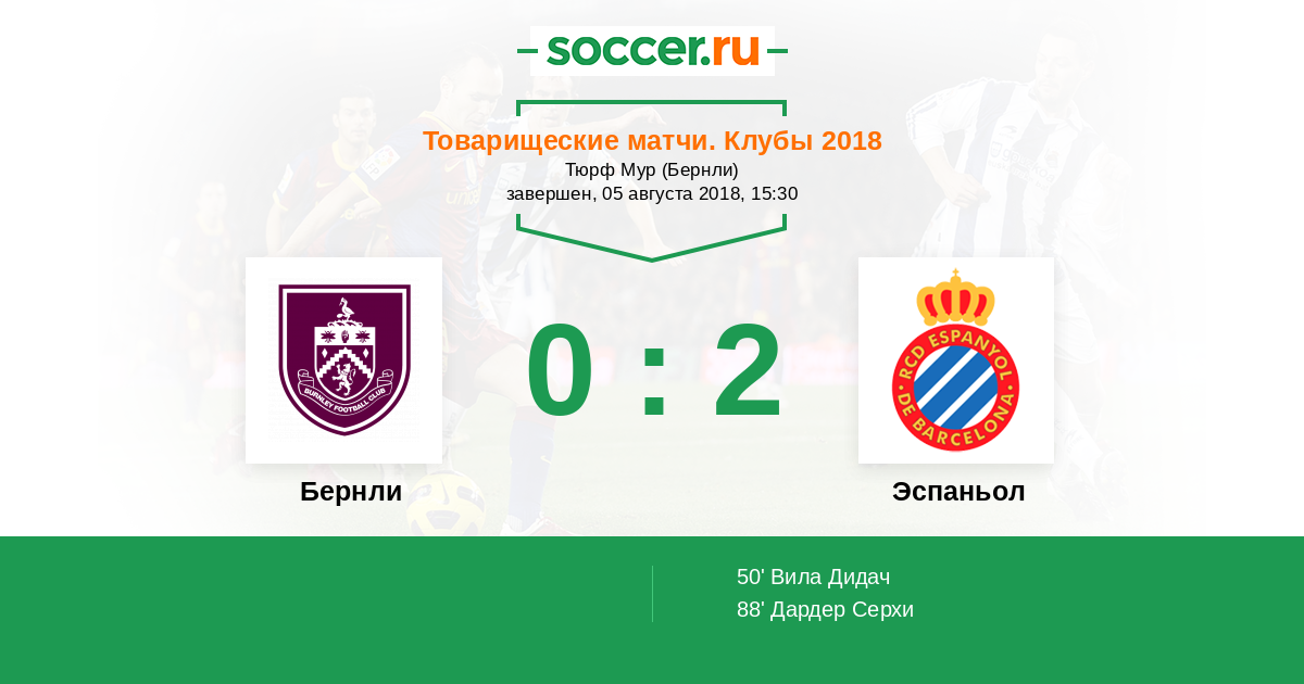 Протокол матча Бернли против Эспаньол