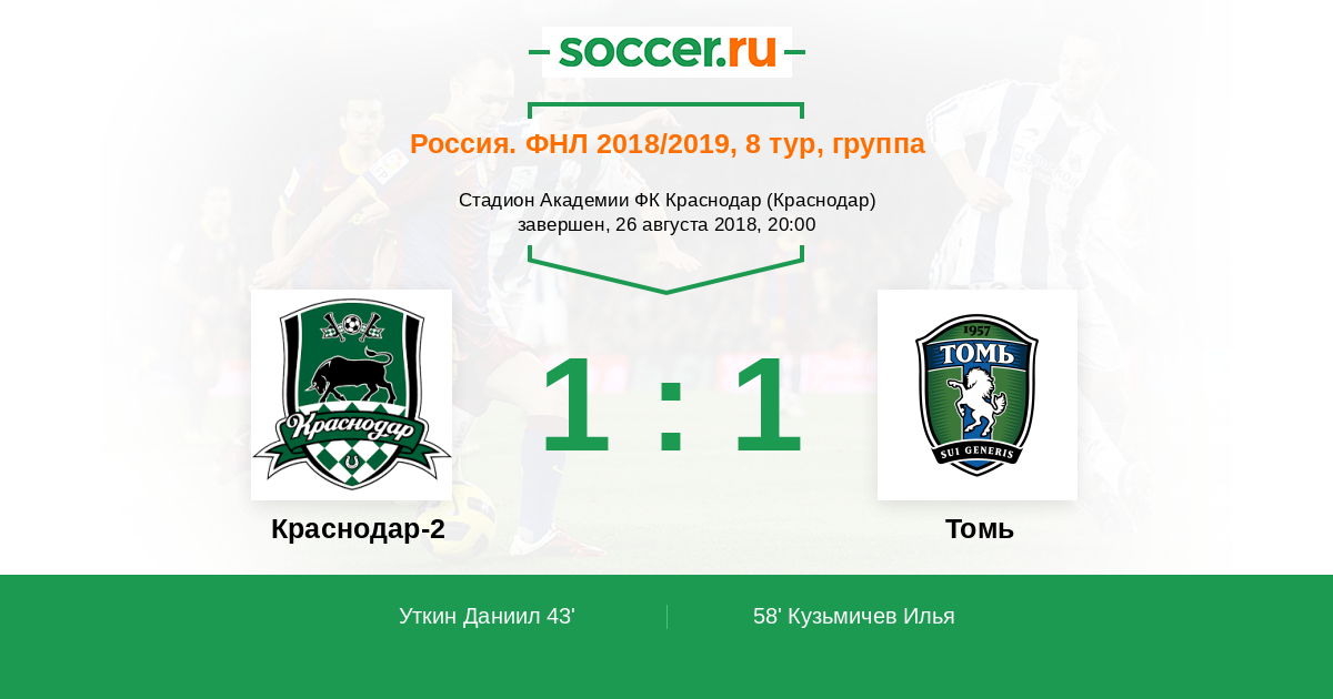 Протокол матча Краснодар-2 против Томь